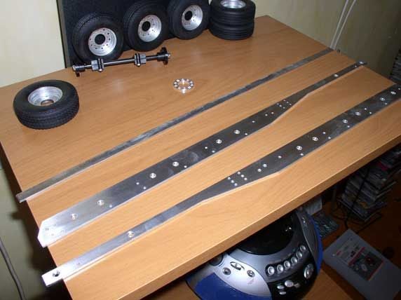 De carrosserie is gemaakt uit aluminium strippen dik 3 en 2mm die aan elkaar gelijmd zijn met speciale metaallijm.