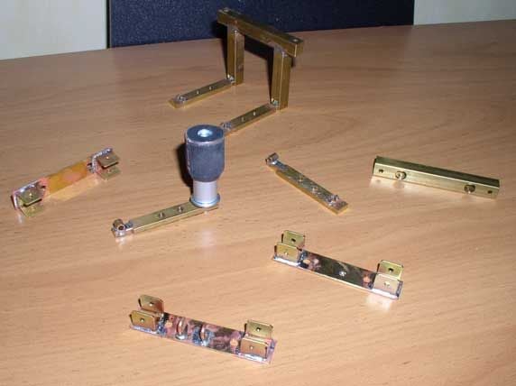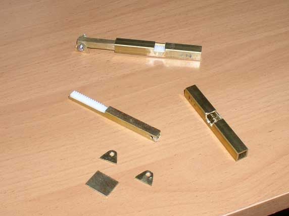 De steunpoten zijn gemaakt uit messing kokerprofielen die in elkaar glijden van de binnenste buis heb ik iets afgevijld,