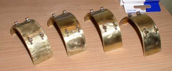 De spatborden zijn gemaakt uit 0,5mm messing die gebogen zijn en aan de onderzijde gesoldeerd zijn aan strippen van 2x2mm